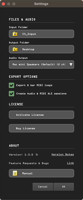 - Create Audio && MIDI ALS sessions — When enabled, Qie generates ready-to-open Ableton Live projects (see Ableton Project Generation below).